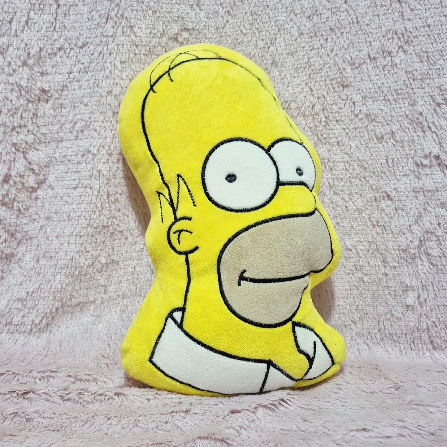 Fabricado en material de felpa suave, funciona perfectamente como almohada Homero Simpson para descansar, ver series o simplemente relajarte después de un día largo. Su relleno es cómodo y mantiene la forma, lo que lo hace ideal tanto para uso diario como decorativo.